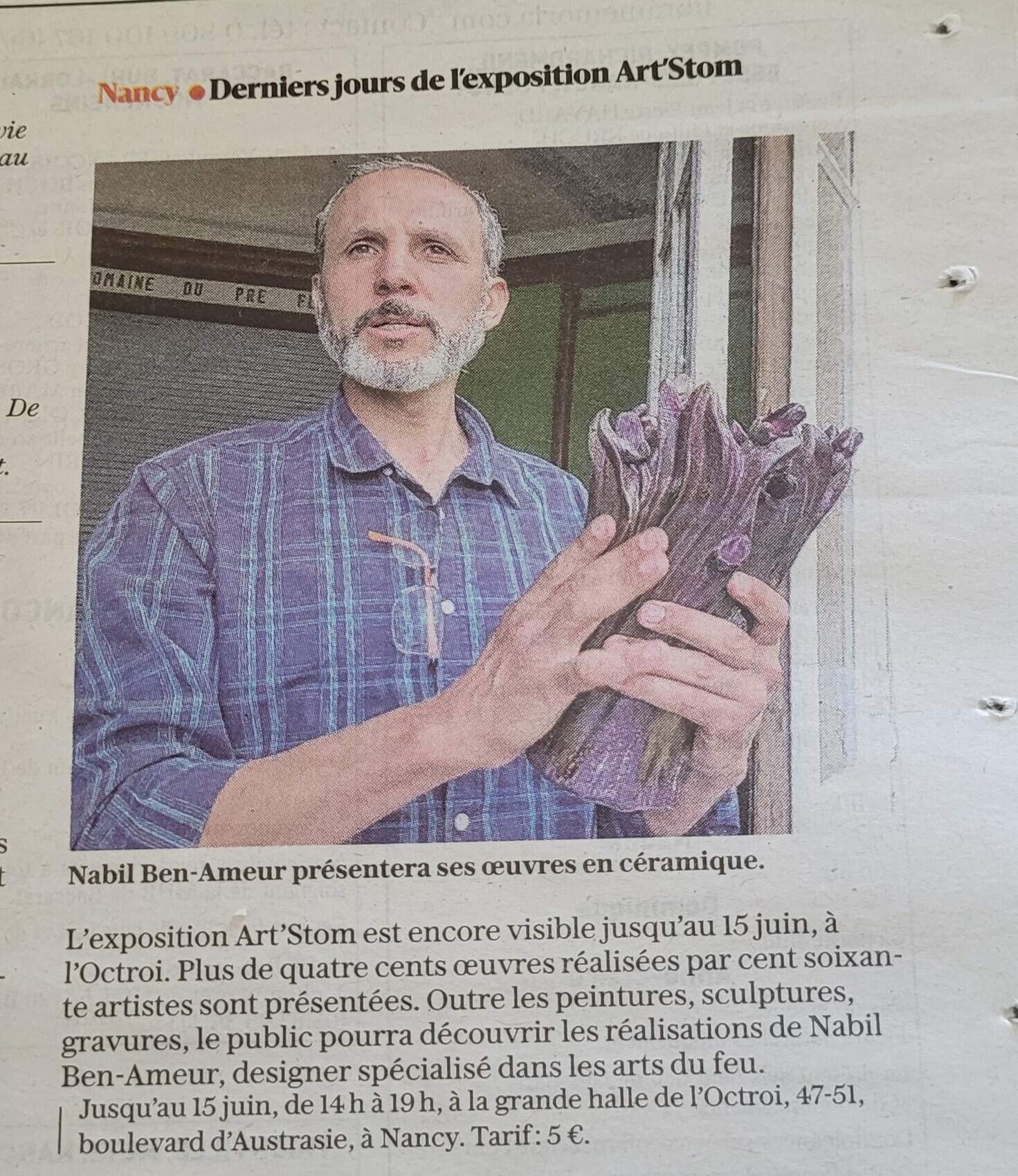 Voir l'article Présentation des œuvres en céramique de Nabil Ben Ameur dans le cadre de l’exposition Art’Stom à la Grande Halle de l’Octroi à Nancy.