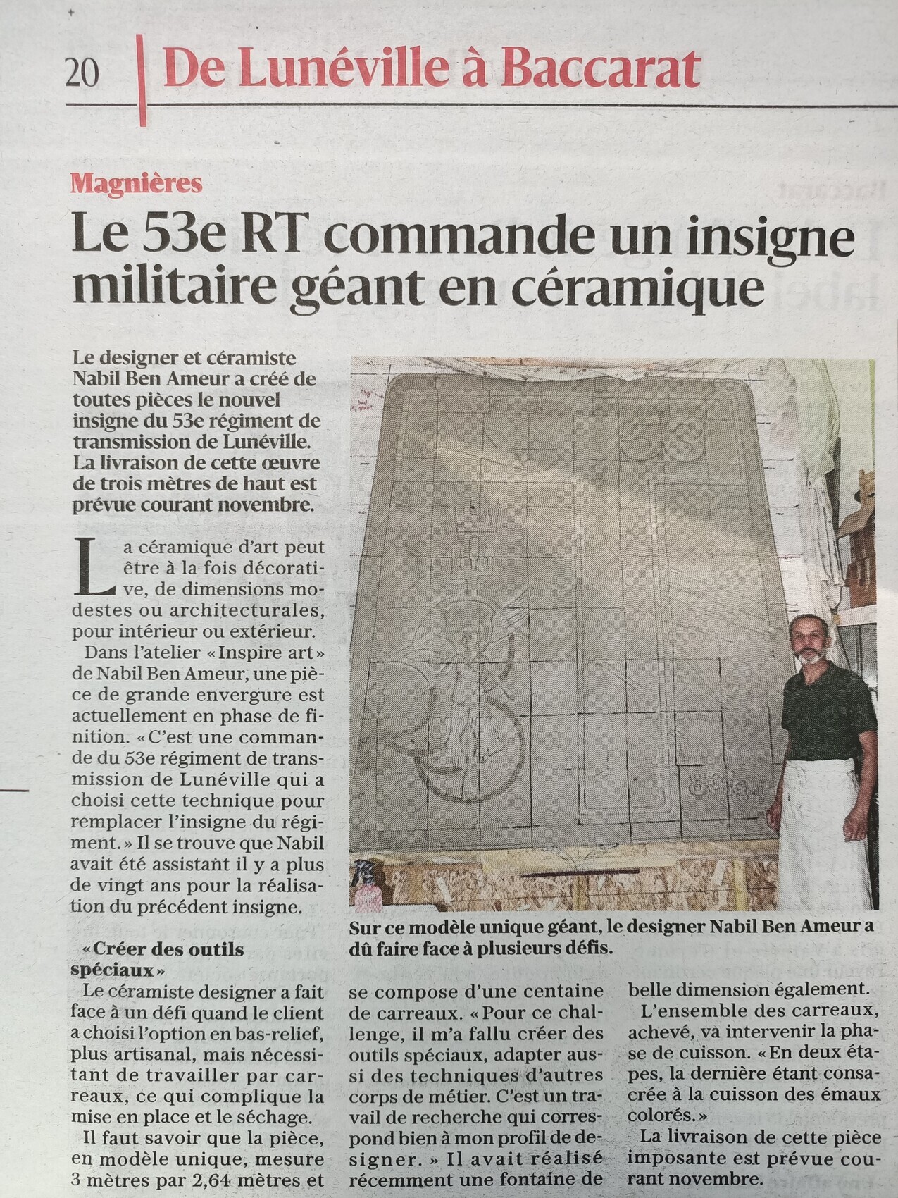 Juin 2026 : Le 53e RT commande un insigne militaire géant en céramique (L’Est Républicain (édition De Lunéville à Baccarat)) |