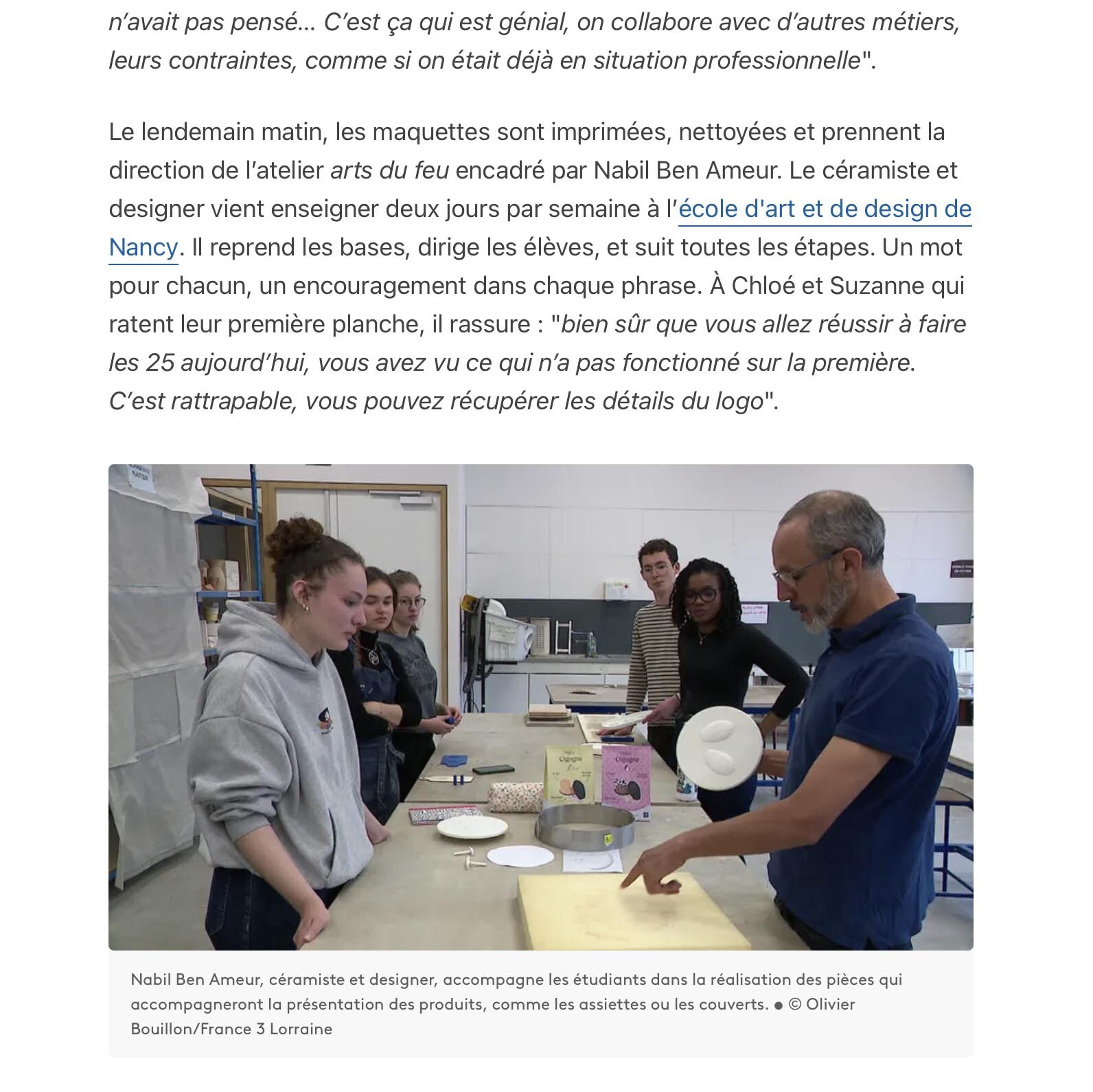 Reportage sur l’atelier « Arts du feu » animé par Nabil Ben Ameur à l’École supérieure d’Art et de design (ENSAD) de Nancy, présentant son enseignement auprès des étudiants en céramique et design.